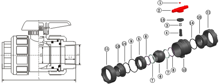 UPVC雙活球閥Q11F閥體的主要材料為全塑料UPVC。閥體重量輕,耐腐蝕性強,外形緊湊美觀,重量輕,安裝方便,耐腐蝕性強,適用范圍廣。適用于直接飲用水系統。